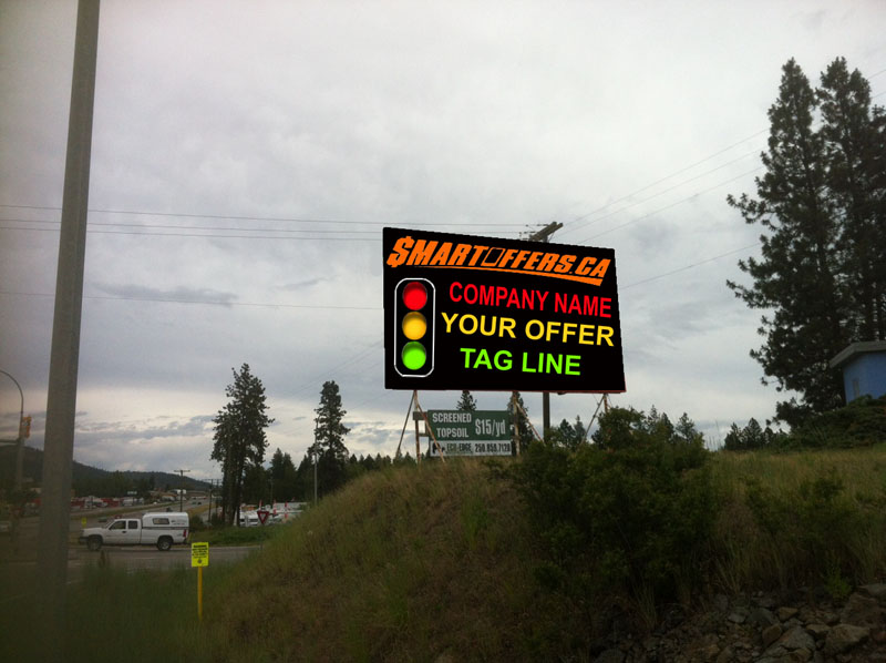 Big Black Sign will be applying our changeable format to Billboards at strategic locations in the Okanagan region of BC. Our first Billboard will be located in West Kelowna servicing northbound traffic at the intersection of Daimler and Hwy 97. Current Status > Google Map Link