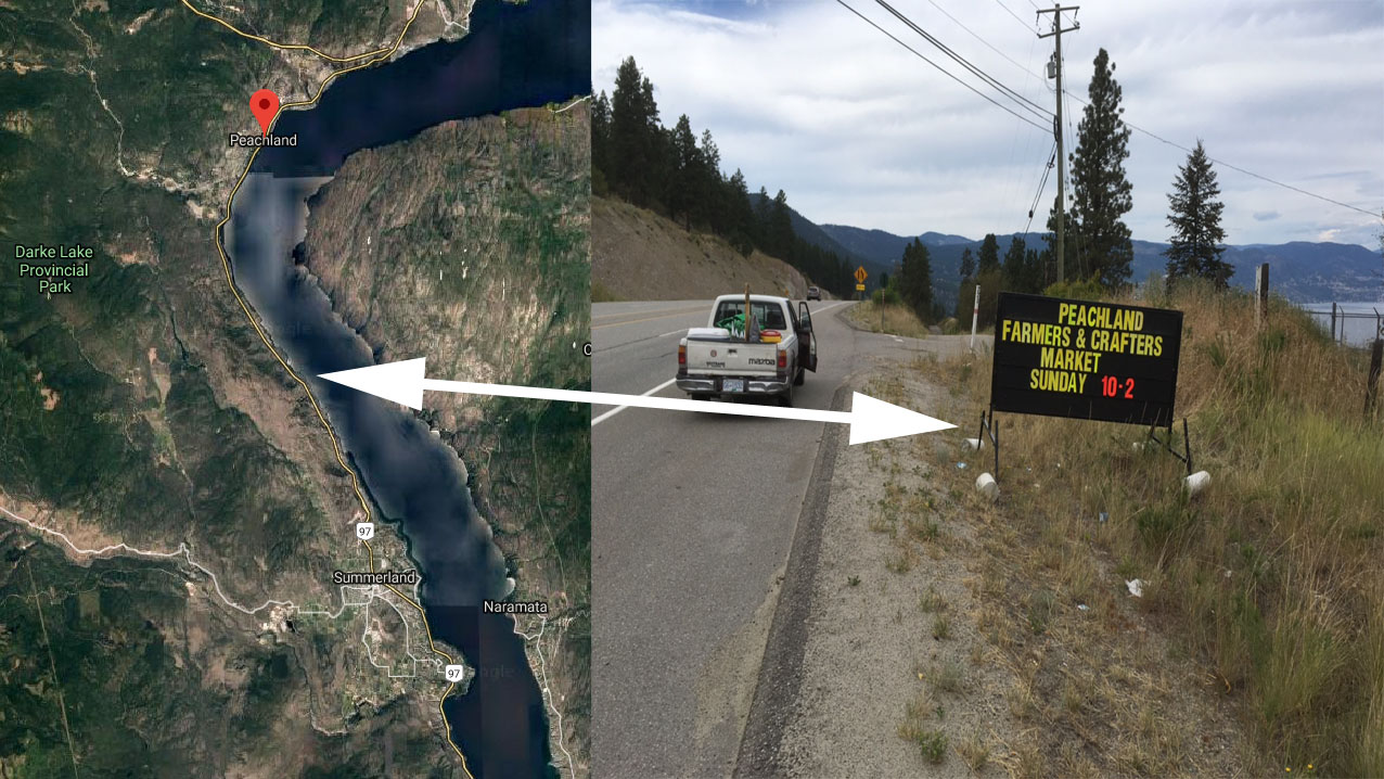 Big Black Sign has some ideal locations for community event signage. See the sample location (below) between Peachland and Summerland . This location could provide info for any community event between Kelowna and Penticton. Note: This service is provided at a discounted rate for service groups. (Call Jim to Discuss)